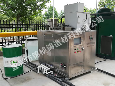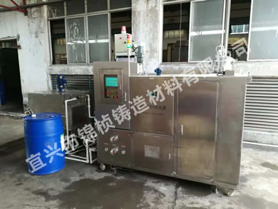 脱模剂是压铸生产中模具冷却、产品脱模必须使用的水性溶液,通常情况下,大量的脱模剂被喷到模具上,部分脱模剂在高温下蒸发,部分吸附在模具上使用消耗了,还有一部分流入模具下方,经污水沟进入污水处理系统或直接排掉,要么产生污水处理费用,要么产生环境污染;由于这部分脱模剂含有效成分比较多,所以也造成大量资源浪费。我公司研发的脱模剂回收装置有效解决了除油、杀菌、过滤等影响脱模剂回收利用的核心问题,为贵公司大大降低了生产成本和环境污染。